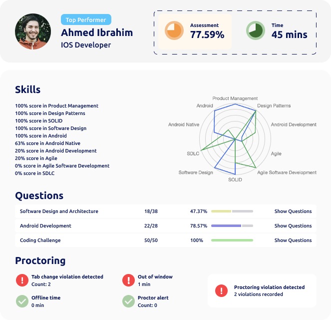 TechieMatter designs the assessment based on your needs to include different questions, including MCQ, coding challenges,… and more.